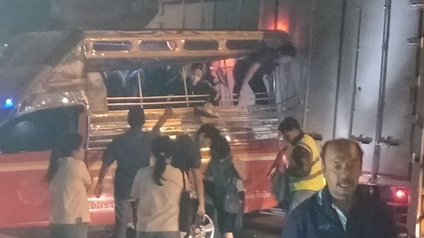 เมื่อเวลา 05.50 น. วันที่ 10 ม.ค.2567 เจ้าหน้าที่ ตำรวจ สภ.บางแก้ว รับแจ้งเหตุรถ บรรทุก 6 ล้อชนท้ายรถสองแถวโดยสาร มีผู้ได้รับบาดเจ็บหลายราย บริเวณถนนเทพารักษ์ กม.8 ขาเข้า หน้าปากซอย น้ำผึ้ง 2 ต.บางพลีใหญ่ อ.บางพลี จ.สมุทรปราการ จึงรุดไปตรวจสอบพร้อมมูลนิธิป่อเต็กตึ๊งที่เกิดเหตุเป็นถนน 3 เลน พบรถสองแถวโดยสาร ยี่ห้อโตโยต้า ทะเบียน 10-7656 สมุทรปราการ คนขับชื่อ นายธีรพล (ขอสงวนนามสกุล) อายุ 43 ปี สภาพรถถูกรถ บรรทุก 6 ล้อตู้ทึบ ยี่ห้ออีซูซุ ทะเบียน 70-2107 เลย ชนท้ายด้านขวาปิดท้ายรถสองแถว จนหลังคาและท้ายรถพังเสียหาย คนขับชื่อ นายวีรวัฒน์ (ขอสงวนนามสกุล) อายุ 28 ปี