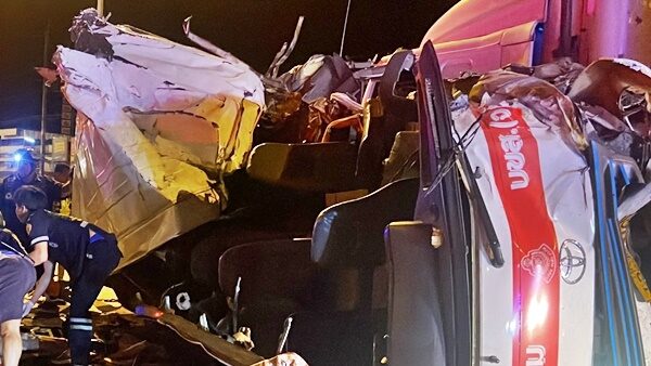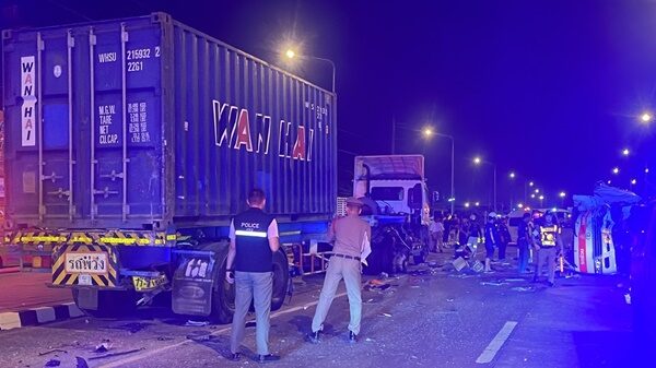 13ชีวิตเจ็บเกลื่อนถนน ทหารเรือ เหมารถตู้กลับบ้าน ชน18ล้อ ดับสลด2ศพ